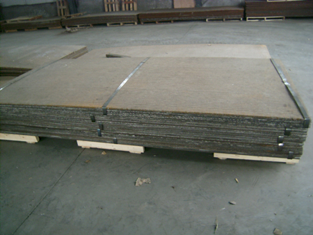 明弧堆焊制作的雙金屬復(fù)合耐磨鋼板的耐磨層一般較薄些,如6+4,8+4,6+6,8+6,8+8等,鉻含量一般是20左右,這是因?yàn)槊骰《押笗r直接采用的焊絲堆焊,焊絲的鉻合金含量均不高。